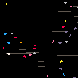 Simulate flocking behavior using boids algorithm, made with Pico-8.